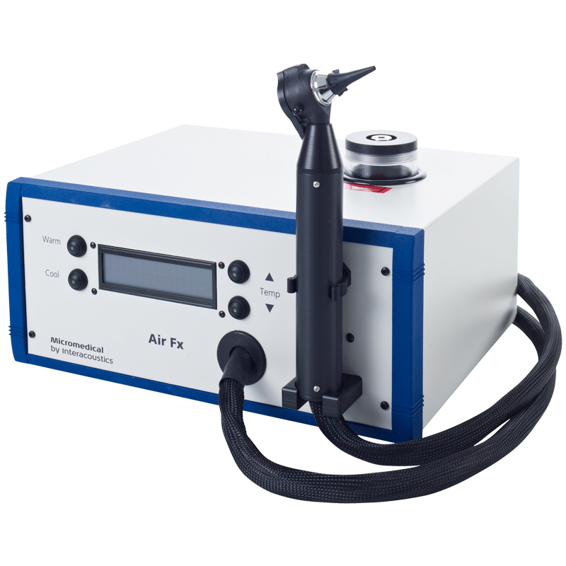Air Fx kalorisk irrigator erbjuder ett otoskopiskt handtag med belysning och förstoring. En integrerad vattenbehållare bidrar till att kyla luft ner till 20 °C, och varma irrigationer kan göras upp till 50 °C. Air Fx kan användas som en fristående enhet eller kontrolleras från Interacoustics VNG-programvara.