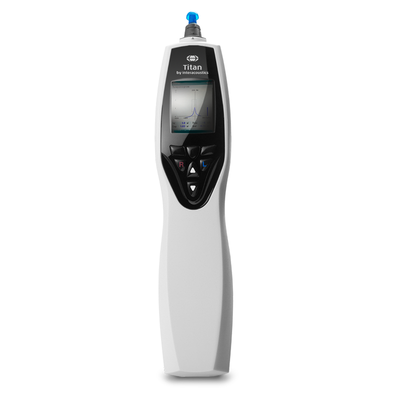 Titan Screener är en snabb och tillförlitlig screener som erbjuder tympanometri och reflexmätningar. Den intuitiva navigationen i Titan ger ett smidigt arbetsflöde och så snart en förslutning detekteras, startar mätningen. En unik och robust pumpdesign säkerställer högkvalitativa testresultat och den ergonomiska designen gör den enkel att hantera. Med en vikt på endast 360 gram, en lagringskapacitet för 250 patienter och 3,5 timmars kontinuerlig testtid, går det enkelt att bära med sig Titan. Titan erbjuder alternativ såsom högfrekventa sondtoner, PC-kontroll med Titan Suite-programvaran och lagring av data i Interacoustics OtoAccess™-databas.